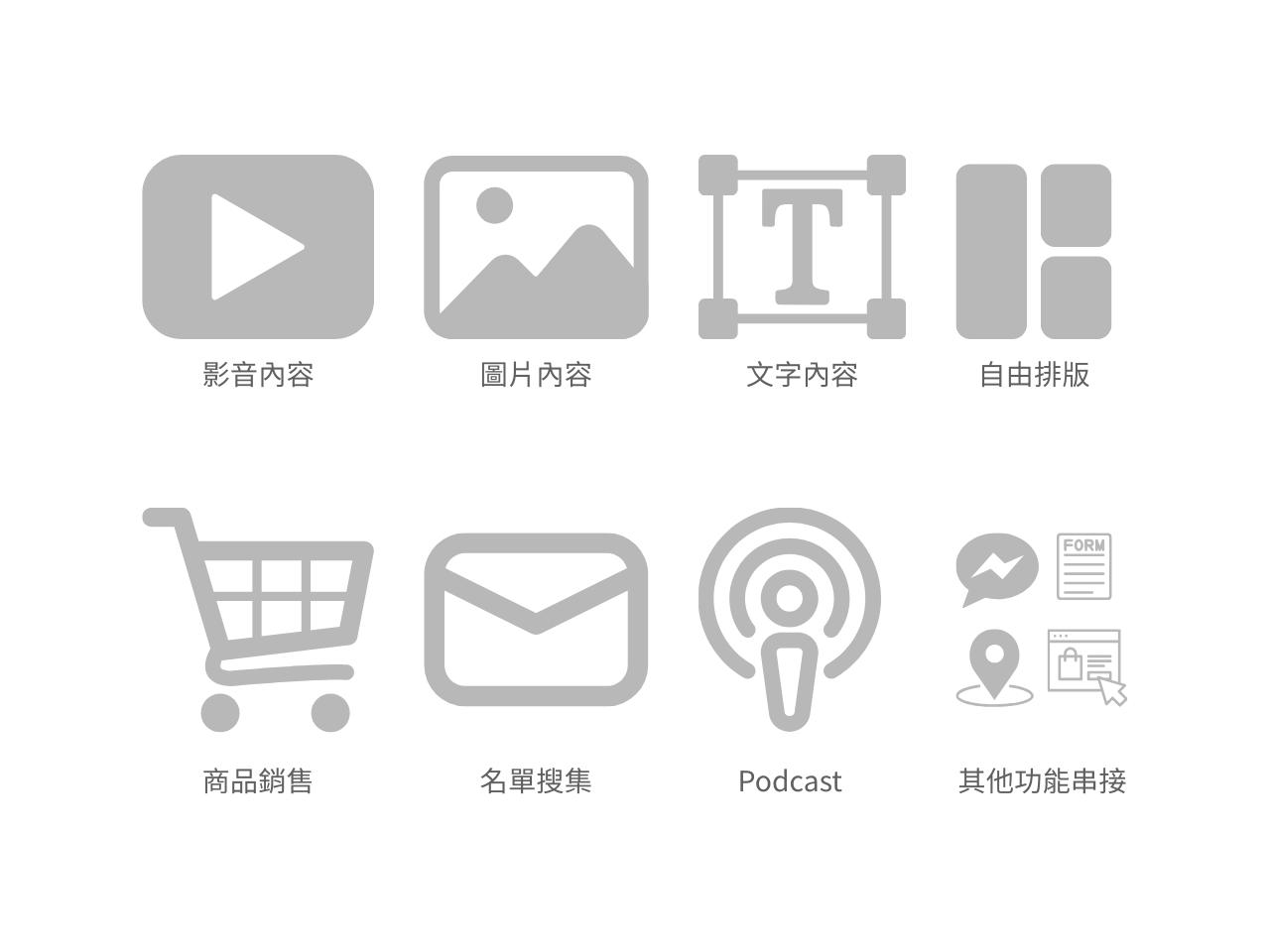 我們的模板網站可以搭配使用購物車、課程系統、銷售頁、部落格等各種功能,讓你用平易近人的價格,靠自己就可以打造擁有完整功能的網站。